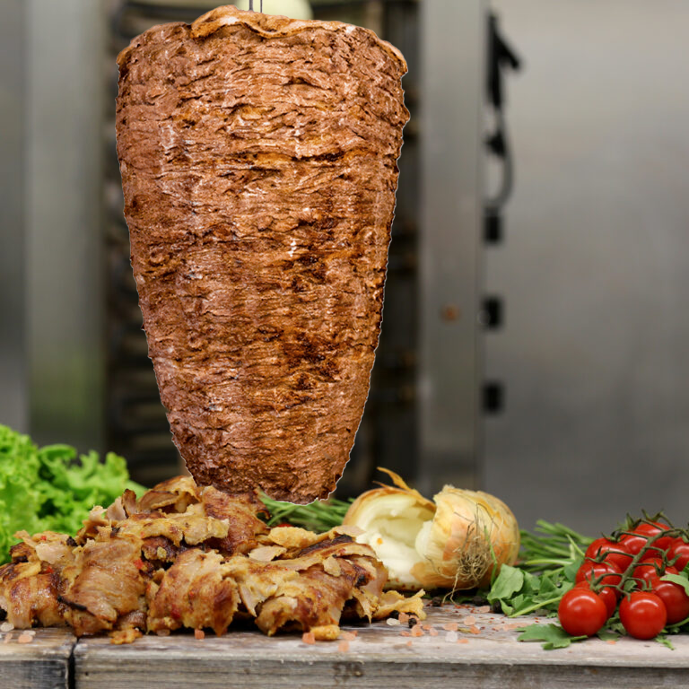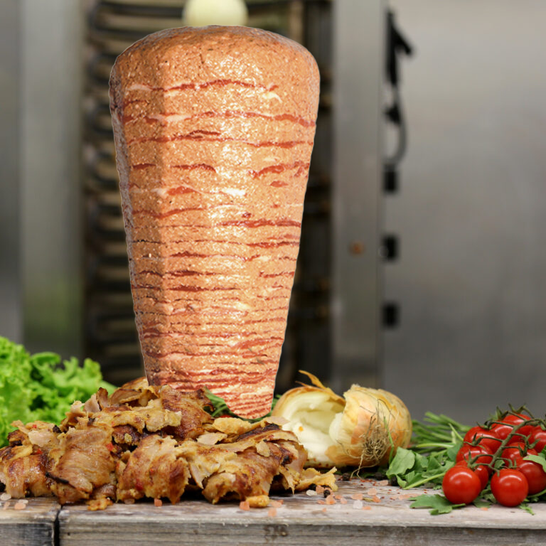 Unser Scheiben Döner mit feiner Geschmacksnote besteht zu 100 % aus hochwertigem Kalbfleisch. Das Fleisch wird mit modernen Maschinen in Scheiben geschnitten und anschließend mit ausgewählten Gewürzen und Saucen in speziellen Reifeschränken gelagert.
